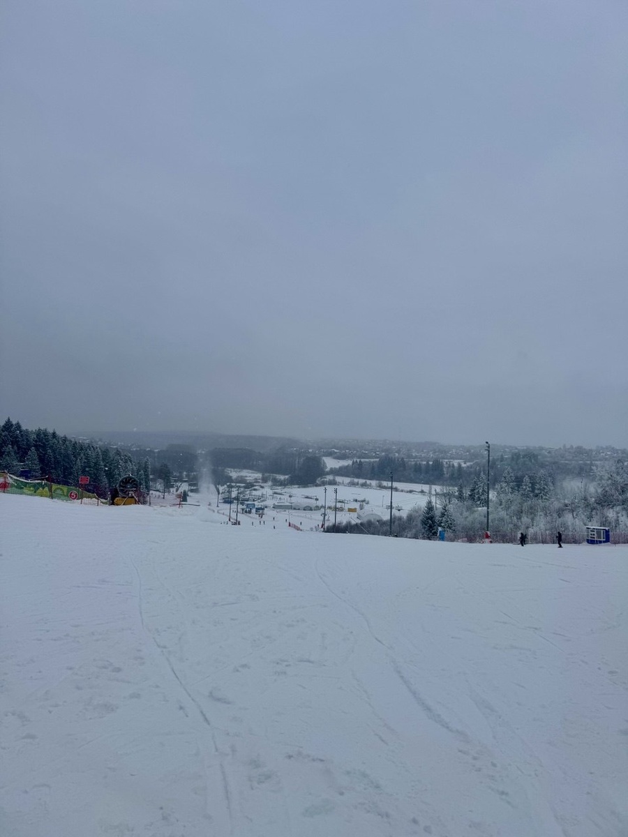 Мы приехали в Сорочаны днем в пятницу, и уже на въезде было понятно – мы сможем спокойно покататься, поскольку парковка была полупустая. Вид на заснеженные склоны и подъёмники сразу создаёт горнолыжное настроение!