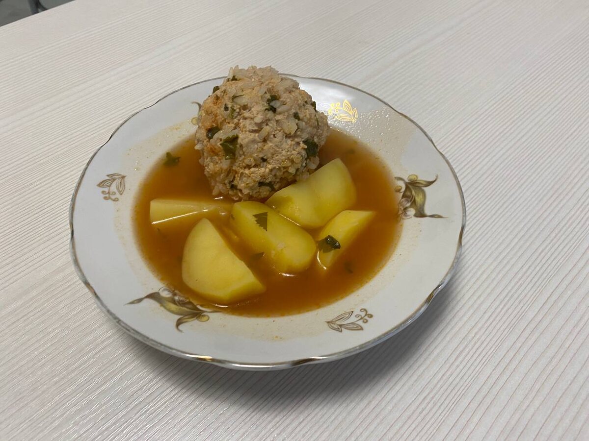 Всем привет! Сегодня я хочу с вами поделиться очень простым рецептом национального кавказского супа под названием "Кюфта". Он очень легкий в приготовлении, но при этом очень вкусный и наваристый! Для приготовления этого блюда нам понадобится: (Я варю в большой кастрюле 5л) Способ приготовления: 2. Нарезанный лук пережарить в кастрюле с тремя ложками томатной пасты, пассировать примерно 5 минут. Чтобы в готовом блюде томатная паста не отдавала привкусом и запахом земли. 3. Далее картофель разрезать вдоль на 4 части. 4. Отправляем картофель к луку и заливаем водой, так чтобы она покрывала картофель. Накрываем крышкой и ставим вариться на средний огонь и варим до кипения. 5. Половину кинзы нашинковать. 6. Пока вариться картофель, приготовим фарш. Луковицы (2шт) добавить в фарш (я перекручиваю вместе с мясом в мясорубке, если у вас готовый фарш, то нарезать мелкими кубиками). Так же в фарш добавить промытый рис 120 г и нашинкованную кинзу. 7. Все перемешать, добавить соль и перец - по вку