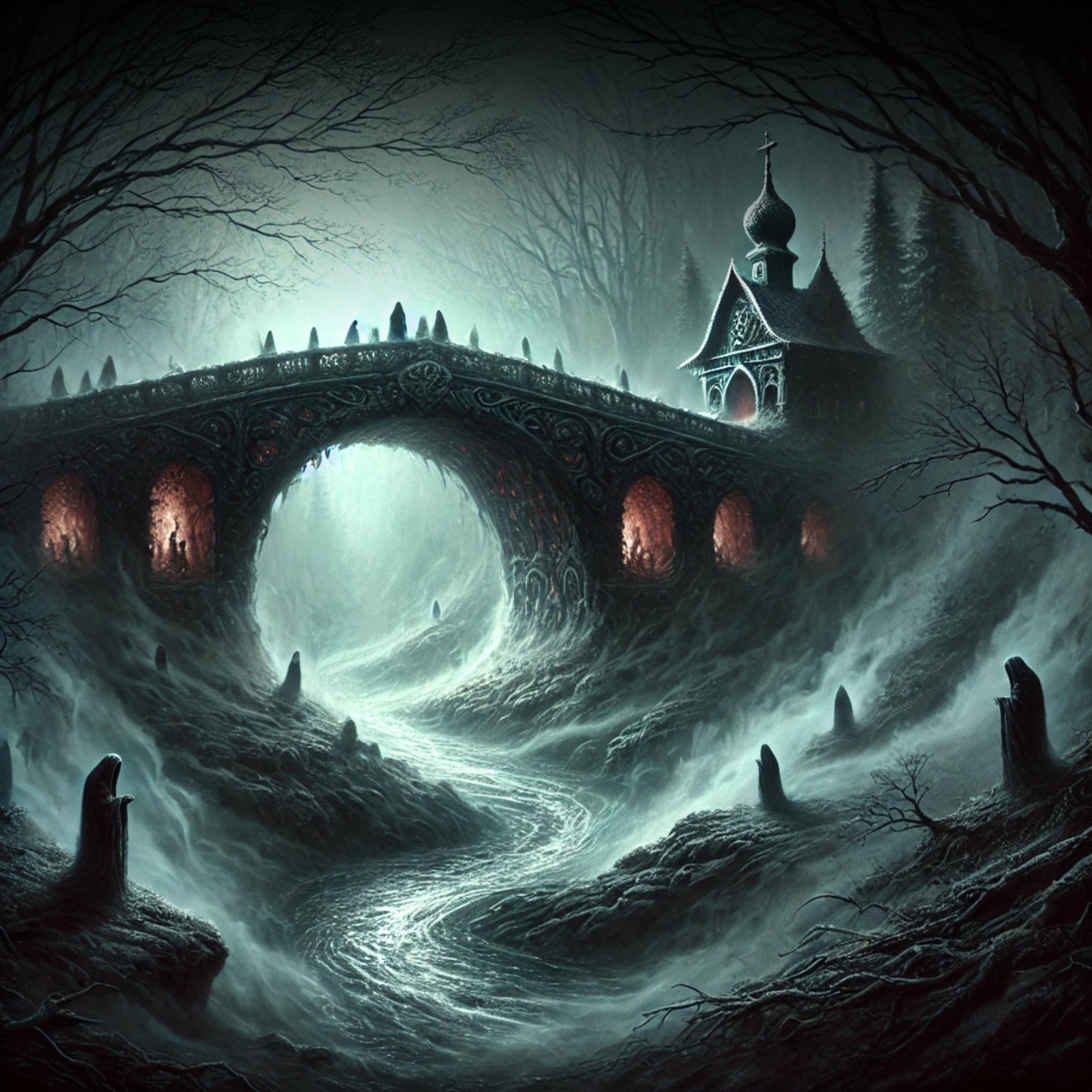 В русских сказках и преданиях часто встречается Калинов мост — мистическая переправа, отделяющая мир живых от мира мёртвых. Именно здесь богатыри сходились в схватке со Змеем Горынычем, а души отправлялись в иной мир. Но почему именно «калинов» и почему мост? Название «калинов» связывают с древнерусским словом «калить» — раскалять, делать огненным. Мост считался не просто дорогой, а испытанием: пройти по нему мог только тот, кто достоин. В других версиях говорили, что это «калинов» от калины — символа крови, жертвы и связи с предками. Под мостом текла река Смородина — не обычная, а пограничная, отделяющая явный мир от потустороннего. В одних легендах она полыхала огнём, в других — была тёмной и вязкой, как сама смерть. Калинов мост — это не просто переход, а арена схватки. Здесь Змей Горыныч преграждал путь, заставляя богатырей сражаться за право пройти дальше. Это символ древнего испытания: прежде чем попасть в иной мир или вернуться из него, нужно пройти проверку силой или мудростью.