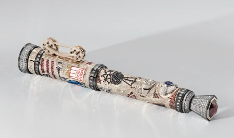 Не так давно была представлена коллекция World of Cinema, которая представлена сразу 6 (шестью!) уровнями лимитированности. Все модели имеют схожую форму и клип в виде проектора, но имеют разные виды отделки. Каждая из шести серий посвящена определённой теме в развитии кинематографа. Эта модель в единственном экземпляре и изображена на фото. Это эксклюзивное издание чтит наследие Голливуда и украшено россыпью драгоценных камней, которыми изображены сверкающие рубиновые башмачки Дороти из "Волшебника страны Оз", классический пакет попкорна и американский флаг. Поворотный колпачок украшен бриллиантом, весом около 5 карат. #montblanc #новости