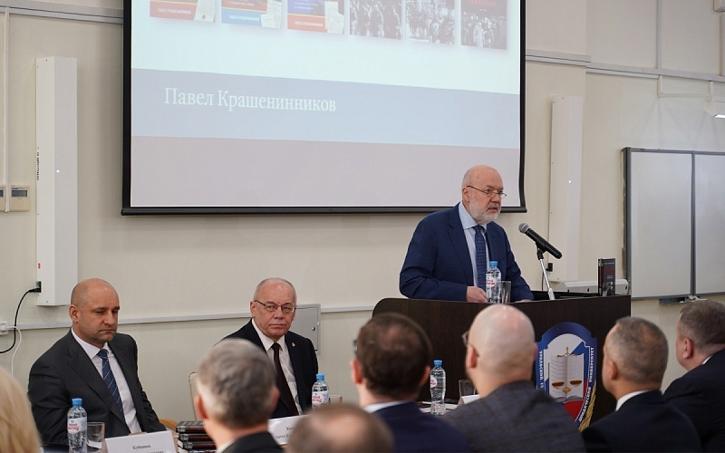 Сегодня прошла встреча студентов Уральского государственного юридического университета им. В.Ф. Яковлева с выпускником этого учебного заведения, а ныне председателем Комитета Государственной Думы по государственному строительству и законодательству Павлом Крашенинниковым. Во встрече приняли участие Полномочный представитель Президента РФ в Уральском федеральном округе А. В. Жога и Губернатор Свердловской области Е. В. Куйвашев. Поводом стала новая книга Павла Владимировича «На пути к сверхдержаве. Государство и право во времена войны и мира, 1939-1953 гг.», посвященная юбилею Победы. И конечно будущих юристов заинтересовала правовая трансформация страны и всего мира накануне войны и после ее начала.