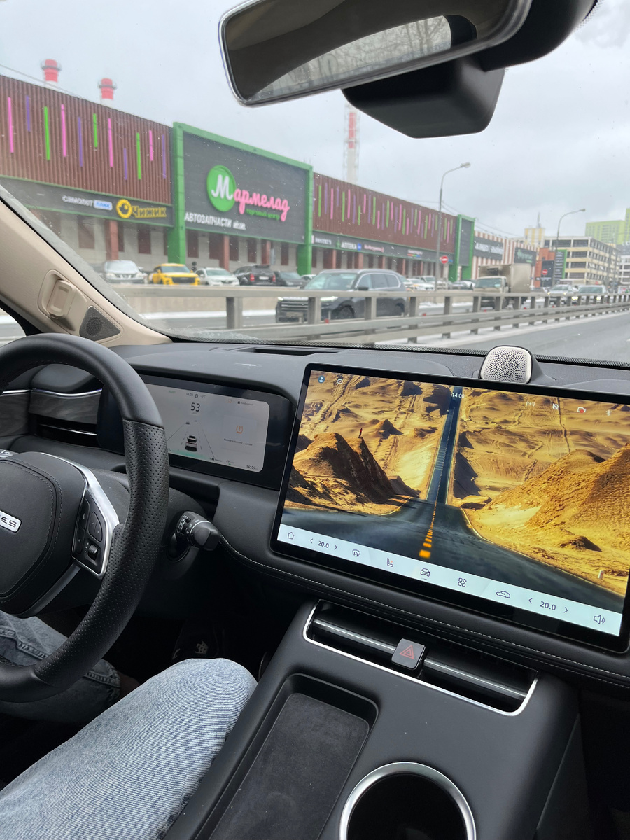 Продолжу свой разговор об этом автомобиле, у меня мнение разделилось на две стороны, вроде все красиво и здорово, но 5 млн рублей отдавать за Китай который толком не испытан на наших дорогах. Да, салон красивый и оболочка все очень здорово, но вот начинаешь пользоваться и не понимаешь куда нажимать и тд, даже за час я не смог найти некоторые опции, не так интуитивно как если бы тут было хоть немного физических кнопок, все таки завязывать всю машину на планшете не всегда здорово, хоть и супер современно, но на вкус и цвет. В автомобиле есть несколько режимов вождения, плюс несколько режимов управления гибридной установкой. Можно включить сугубо электродвигатель, принудительно. или же гибрид, чтобы аккумулятор сразу заряжался, но нужно держать определенную скорость чтобы он успевал. Также можно заряжаться стоя на паркинге, где то 5 процентов в 10-20 минут, в целом неплохо, учитывая запас на электротяге 200 км заявленных, по факту 120-130. Передняя подвеска жестче чем задняя, управляется