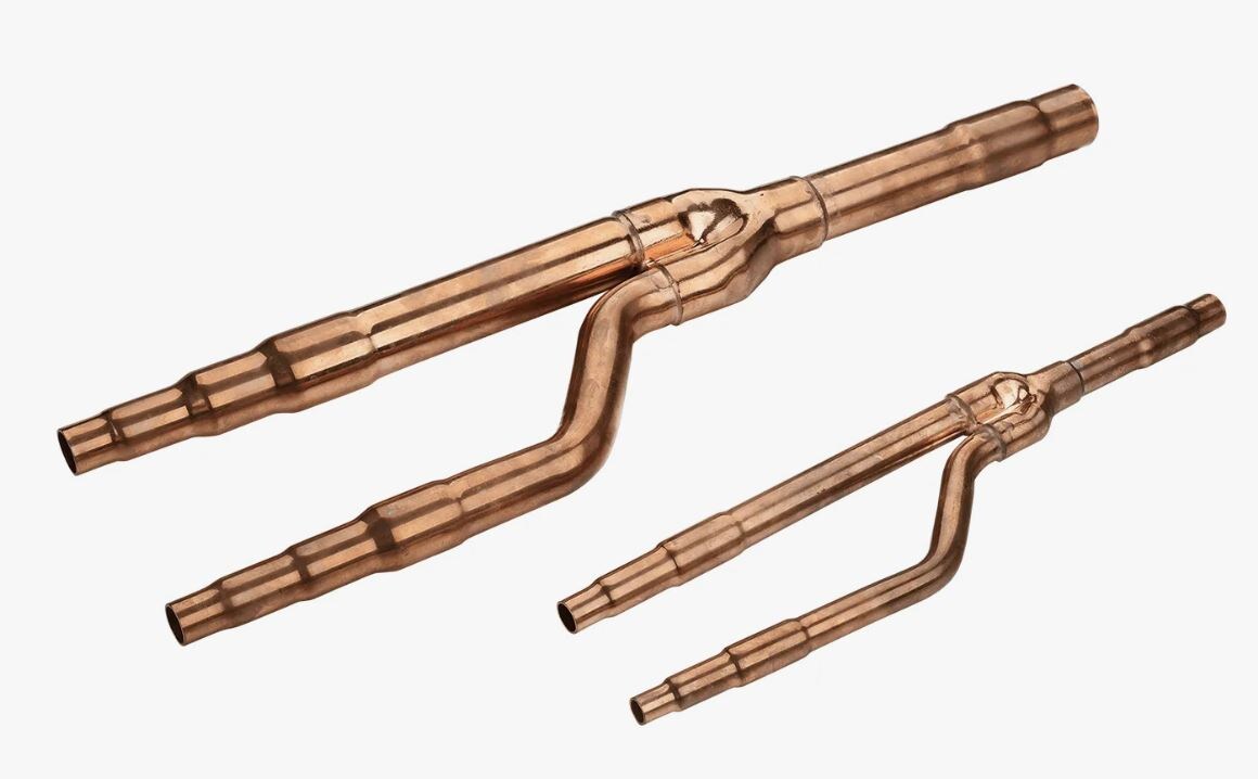 Рефнеты выполняют функцию разделения потока хладагента. Для правильного монтажа рефнетов соблюдайте следующие указания. 1. Рефнеты устанавливаются как можно ближе к внутреннему блоку, чтобы снизить влияние ответвительной трубы внутреннего блока на распределение хладагента. Если длина (расстояние от внутреннего блока до ближайшей части магистральной трубы) трубопровода внутреннего блока превышает 10 м, на стороне жидкости внутреннего блока следует использовать трубу большего диаметра. 2. Рефнеты и трубы должны быть совместимы с оборудованием. Не должны использоваться элементы, которые не рекомендованы производителем. 3. Перед установкой тщательно проверьте по размеру совместимость рефнета с системой кондиционирования. 4. Возможны два способа установки рефнетов: 5. Длина участка прямой трубы между соседними рефнетами должна быть не менее 800 мм. 6. Длина участка прямой трубы от торца рефнета по главной магистрали до отверстия после поворота должна быть не менее 800 мм. 7. Длина участка