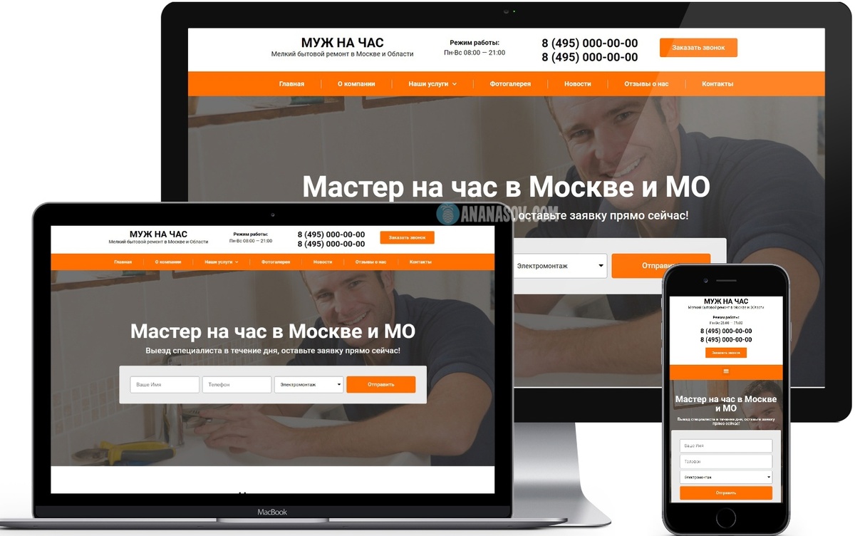 Купить готовый сайт «Муж на час» на WordPress на ananasov-lp.ru