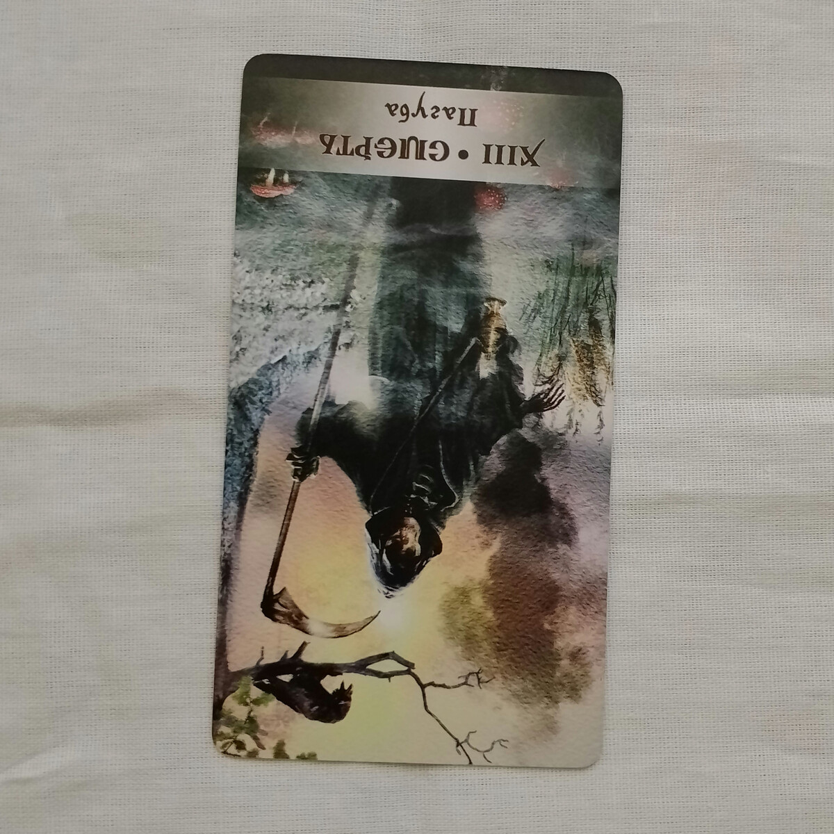 Едрить меня по башке бандеролью! Вот была бы карта в нормальном положении, я бы не парился. А то, что Гримуар Темной Силы выдает старший аркан в реверсе, говорит о том, что не так может пойти абсолютно всё, что касается ситуации и жизненной сферы. Смерть - о трансформации, но в реверсивном положении либо сами трансформации кривые, либо путь к ним чрезвычайно рискованный и может привести в такие дебри, что без бутылки не разберешься.