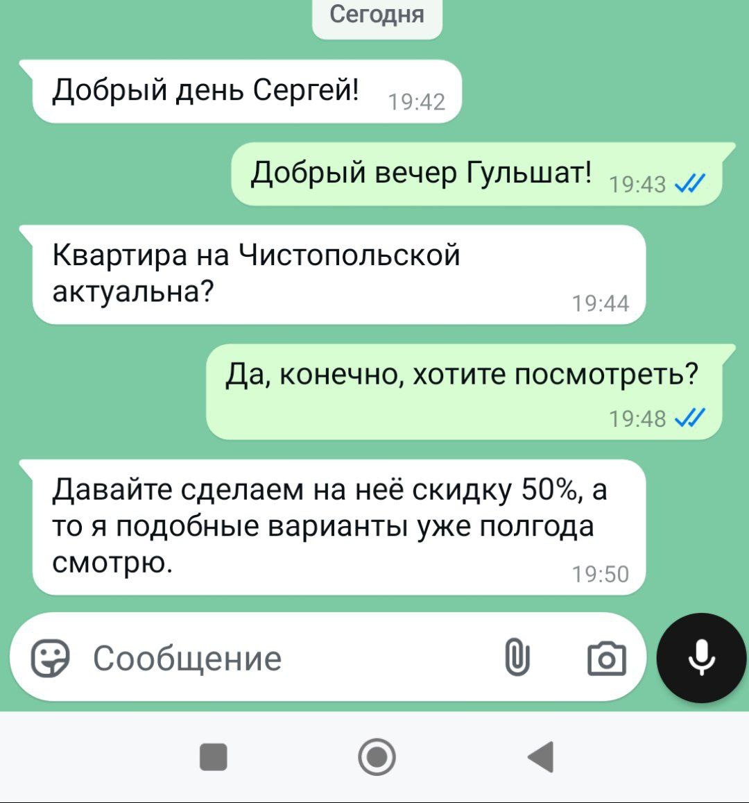 "Давайте сделаем скидку 50%, а то я уже смотрю полгода."