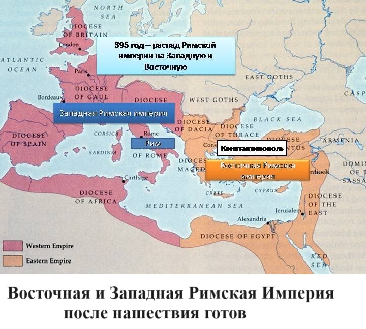Последняя позднее обзавелась собственным Императором. Любопытно, что после этого вторжения якобы германского народа готов в Югославии по сей день осталось чисто славянское население. Дело тут в том, что в Македонии, Далмации, Иллирии – провинциях Римской Империи, соответствующих недавней Югославии и до вторжения готов всегда жило славянское население. Согласно Мавро Орбини (с. 224, 225) вторжение готов в Далмацию происходило под командованием братьев Бруса (прусса - белоруса), Тотия и Остроила. Готы победили, но уже следующее поколение их правителей имело чисто славянские имена: Селимир, Владан, Радмир. Орбини со ссылкой на более ранних авторов (с. 110) объясняет это тем, что готы были только руководителями вторжения, а основная часть войска состояла из рекрутированных славян. Об этом же говорит и Н.И. Васильева в книге «Евразийская Империя скифов». Она отмечает, что на территории России, захваченной согласно историческим сведениям «готами» не осталось об этом никаких инокультурных следов: ни в топонимике, ни в языке, ни в археологических данных. Подавляющая часть войска «готов» состояла из славян. А руководили этим евреи. Евреи и есть «германский» след, оставленный готами. В то время «готы», это был ещё даже не народ, а только идея. Народ был ещё славянский, а идея, проповедуемая евреями, была выделиться из славянского мира и противопоставить себя ему, создать новую культуру. Ортодоксы идеи ушли на запад, где в последствии создали готический стиль в архитектуре, готический шрифт в письменности, немецкий язык на основе латыни. А в России и Югославии с уходом ортодоксов всё просто вернулось «на круги своя» - к прежней славянской культуре. Восточные готы назывались остготы от сокращённого русского слова «восток». Они в это время владели Северным Причерноморьем и Крымом. Там, как мы помним, при римлянах было греческое Боспорское царство. После завоевания Крыма готами, там тоже не осталось ни каких следов германского этноса. Его тогда просто ещё не существовало. Осталось, помимо небольшого количества греков и аборигенного населения древнерусского происхождения много евреев - караимов с тюркским языком, заимствованным потом у татар, и очень древним вариантом иудаизма. Последние и были прежними «готами». Любопытно, что западные готы (вестготы) первоначально назывались «визиготы». Это от искажённого древнерусского слова «веси» - «село», то есть они назывались готы-селяне. Позднее от этого же слова произошло название «викинги». Это потому, что на Скандинавском полуострове, откуда они вышли, население тогда было сравнительно небольшим, городов там, практически, не было, одни сёла. А Россию они называли Гардарика – «Страна городов». Вестготы, как отмечалось выше, ушли на запад Европы и стали прародителями германских народов. В языках германской группы само название «запад» - “west” происходит от древнерусского «веси». И название «восток» по немецки “ost” происходит от сокращённого русского слова. На латыни и древнегреческом языке Названия «восток» и «запад» имеют совсем другой вид. Это ещё раз показывает, что изначально основу «готов» составляли славяне.