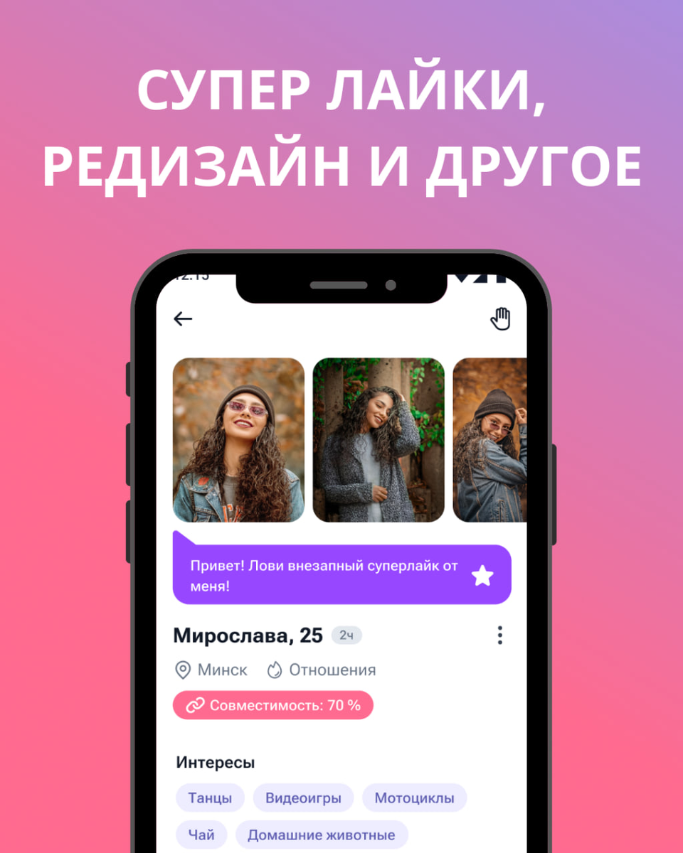 1. Супер лайки - выразьте свою симпатию ярко благодаря специальному лайку с сообщением!