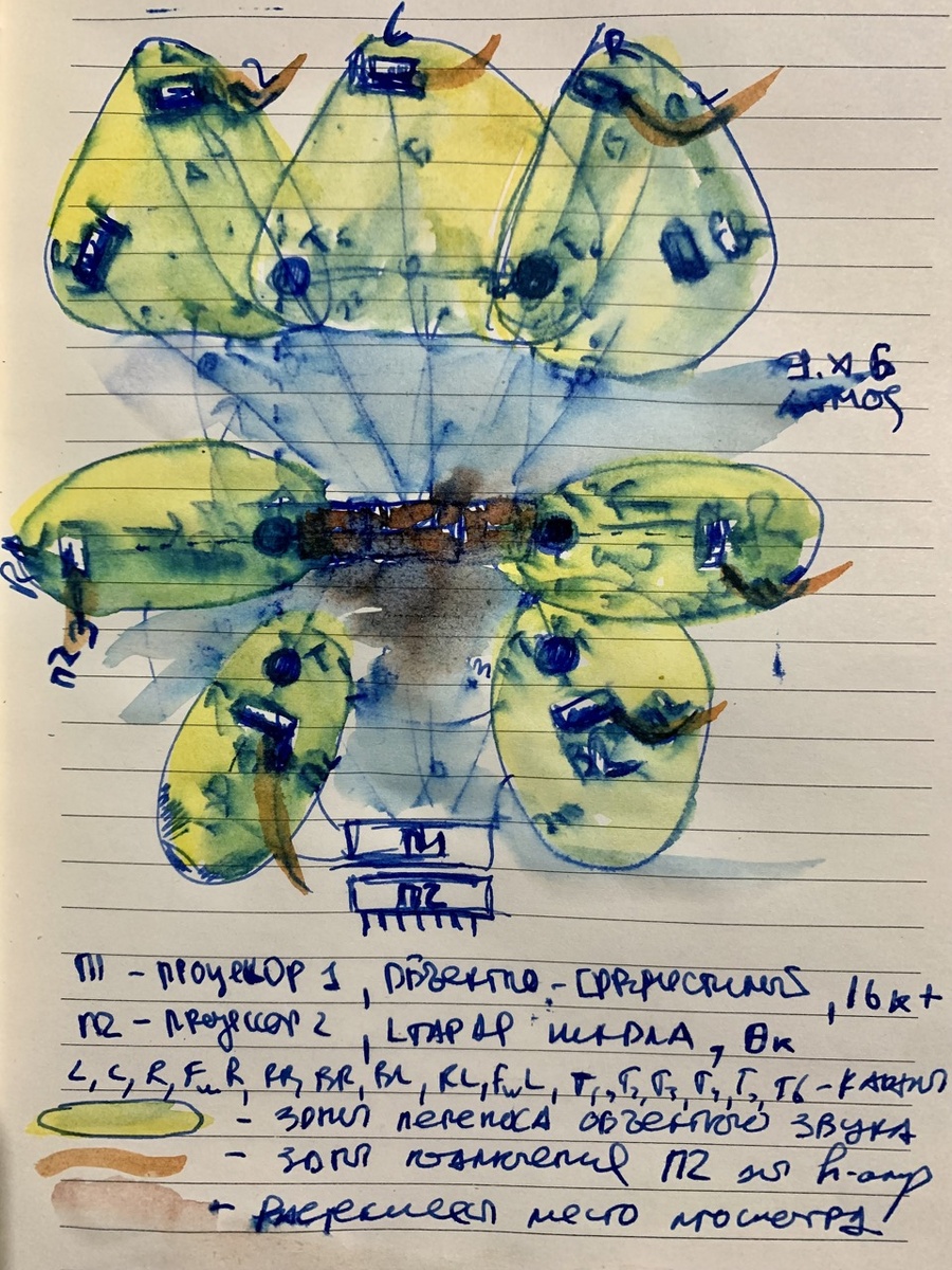 Итого один 16 канальный процессор с Dolby Atmos, один 8 канальный процессор с Dolby TrueHD, и красивое решение поставленной задачи в рамках предложенной концепции.