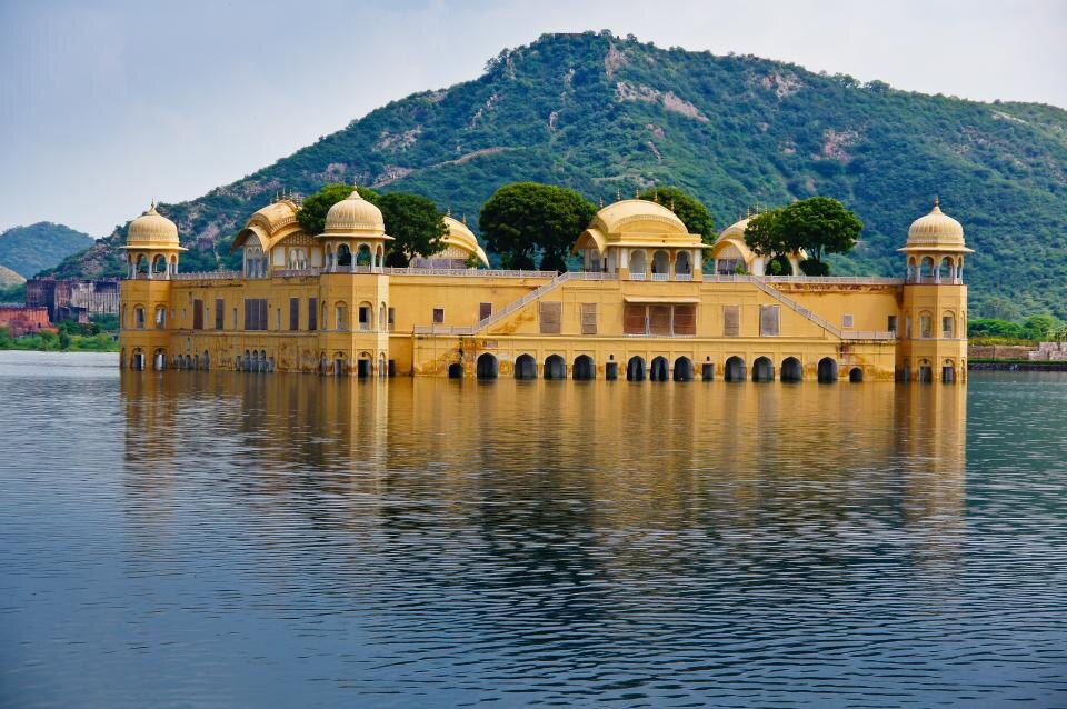 Расположенный в центре озера Ман Сагар, искусственного водохранилища, созданного в 1596 году, Джал Махал (или «Водный дворец») кажется одноэтажным, хотя под водой скрыто еще четыре уровня здания. Хотя название переводится как «Водный дворец», здание никогда не планировалось как дворец как таковой, а было задумано как охотничий домик для местного раджи (короля). В XVI веке сильная засуха побудила местных жителей построить плотину, создав озеро, которое затопило нижние части домика. В XVIII веке запертый в воде домик был отремонтирован, а территория озера расширена. На протяжении большей части истории храма посетители могли пересечь воды озера на гондолах, чтобы посетить исторический фальшивый дворец. Крыша сооружения поддерживает листву, и с береговой линии кажется, что замок все еще используется. Сегодня здание недоступно для туристов, хотя есть планы превратить его в ресторан. Посетителям, желающим увидеть здание, придется довольствоваться видом с суши, который становится еще более