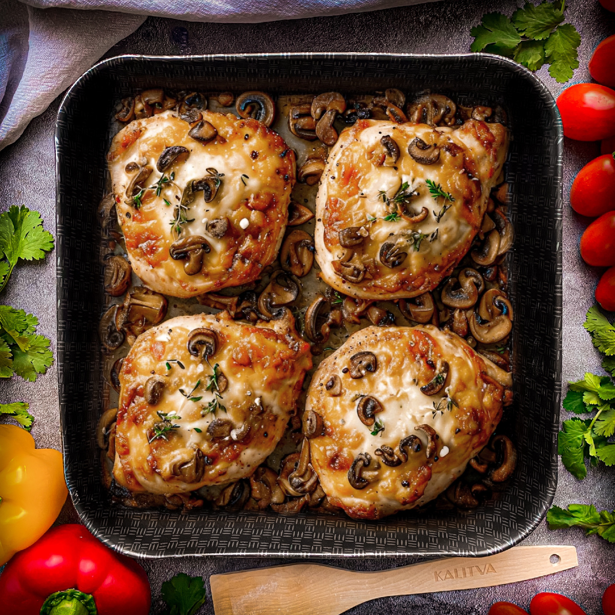 Любите нежную и ароматную курицу? Тогда этот рецепт вам точно понравится! 😍 ИНГРЕДИЕНТЫ: ✅ Куриное филе – 2 шт. ✅ Шампиньоны – 200 г ✅ Лук – 1 шт. ✅ Сыр моцарелла – 100 г ✅ Помидор – 1 шт. ✅ Сливки 20% – 100 мл ✅ Томатная паста – 1 ст. ложка ✅ Соль, перец, специи – по вкусу ПРИГОТОВЛЕНИЕ: 1️⃣ Куриное филе разрезаем вдоль, слегка отбиваем, солим и перчим. 2️⃣ Обжариваем лук и грибы до золотистого цвета. Добавляем томатную пасту и сливки, тушим пару минут. 3️⃣ Помидор нарезаем тонкими кружочками, сыр натираем. 4️⃣ На отбивные выкладываем грибную смесь и посыпаем сыром (можно положить сверху ломтик помидора). Если грибная смесь еще останется, можно слегка допечь её рядом с курицей, добавив за 10 минут до конца. 5️⃣ Запекаем в разогретой до 180°C духовке около 30 минут. Всё зависит от духовки. Готовность лучше проверять ножом. 🔥 Невероятно сочные и ароматные! 😉