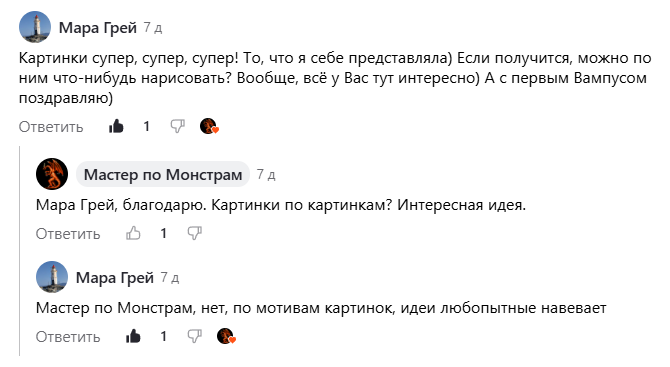 В который уже раз приветствую вас, уважаемые читатели! Итак, месяц назад я выпустил статью с картинками, созданными, по просьбе читательницы, генератором изображений YandexGPT. Там же я рассказал, как сыграл с нейросетью в текстовую игру «Охота на Вампуса». И в комментариях произошёл интересный минидиалог: Саму статью можете прочесть здесь. И я попробовал эту идею.Сначала я просто написал: И появились картинки: Ну, в общем, первая картинка действительно по мотивам предыдущих. А вот дальше вышло интересно.Девушка со второй картинки появлялась на иллюстрациях здесь: И здесь: Также появлялся ходячий вариант машины с третьей картинки. То есть, они тоже по мотивам более ранних картинок. Как только чат-ботка их вспомнила? По идее,она вообще должна помнить их только в течение 14 дней. Затем я решил конкретизировать запрос: Теперь понятней? Затем я задал такой запрос: Может, теперь получится как раньше? Ну что ж, задачу получить картинки по мотивам картинок считаю выполненной, ставьте палец в