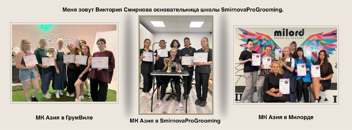 Пошаговое руководство для начинающих грумеров! Груминг сегодня - это востребованная, интересная и я бы сказала творческая профессия, которая требует не только любви к животным, но и терпение и навыки в работе с животными. Если вы хотите стать грумером, но не знаете с чего начать, следуйте этому пошаговому руководству. Шаг 1: Разберитесь в профессии. Перед тем как погрузиться в обучение, важно понять, что включает в себя работа грумера: Шаг 2: Пройдите начальное обучение грумингу. Грумеру необходимо получить базовые знания и отработать навыки на практике. Есть несколько способов обучения: Шаг 3: Купите необходимый инструмент. Каждому грумеру нужны: Шаг 4: Набирайтесь опыта и создайте качественное портфолио. Начните с практики на питомцах знакомых и друзей, предложите услуги по невысокой цене, чтобы набраться опыта. Фотографируйте результаты своей работы и создайте портфолио, которое поможет привлекать клиентов и работодателей. Шаг 5: Определитесь с форматом работы Шаг 6: Найди