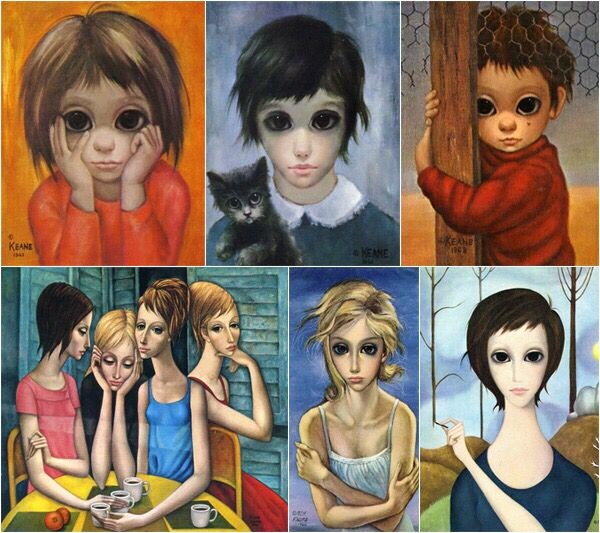 Картины-портреты, которые рисовала Маргарет, отличала яркая особенность. Она рисовала детей с преувеличенно большими глазами - "как блюдца", по словам Уолтера, или, по язвительному определению конкурирующего галериста из фильма, "словно высохшие медузы".