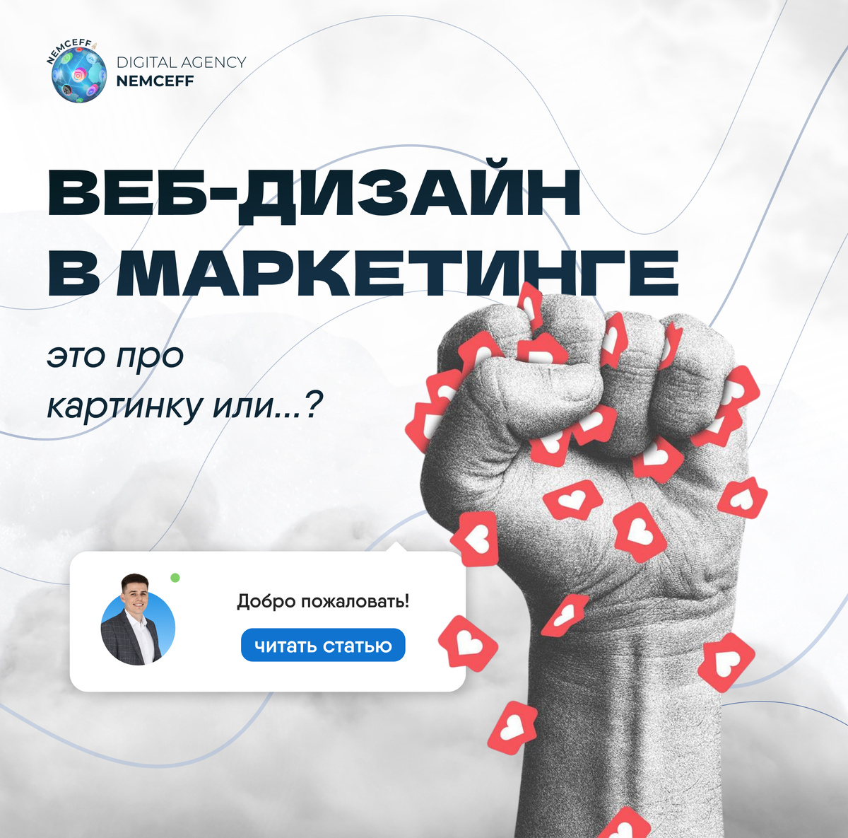 Когда мы впервые начинаем говорить о веб-дизайне, на ум приходят яркие картинки, стильные шрифты, необычные цветовые схемы и эффектная анимация. Создание красивого сайта — это важно, и он действительно должен радовать глаз. Но мы, как маркетинговая команда, знаем, что это всего лишь верхушка айсберга. Для нас веб-дизайн — это прежде всего смысл, польза и системный подход. Также сайт мы готовим в качестве посадки под рекламу. Каждый проект начинается с главного вопроса: «Какова цель нашего сайта?» Зачем мы разрабатываем этот ресурс? Возможно, нужно сформировать имидж компании, представить продукт так, чтобы развеять все сомнения, привлечь новых клиентов или удержать уже существующих. Цель задает направление и определяет, каким образом сайт будет выглядеть. Не менее важный аспект — полезность. Сайт должен быть комфортным не только для Вас, как владельца бизнеса, но и для Ваших клиентов. Он обязан предоставить информацию быстро и доступно, при этом быть конверсионным и мотивировать пользо