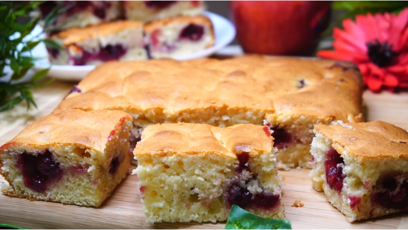 Быстрый пирог к чаю. Испечь такой пирог очень просто. Аромат пирога такой, что невозможно устоять, чтобы не слопать кусочек. Получается нежный, вкусный, просто тает во рту. От приготовивших пирог по этому рецепту только положительные отзывы и слова благодарности 👇 Попробуйте приготовить, и я уверена, что вы оцените этот бесподобный пирог по достоинству 👍 Рецепт: Сливочное масло (или маргарин) -100 гр. Сахар -200 гр. Сметана -200 гр. Яйцо -2 шт. Мука -260 гр. Разрыхлитель -1,5ч.л. Соль-1/4ч.л. Ягоды (у меня замороженная вишня) -250 гр. СПОСОБ ПРИГОТОВЛЕНИЯ Растопим 100 грамм сливочного масла, добавим 200 грамм сахара, 200 грамм сметаны любой жирности, у меня 15%, разбиваем 2 яйца, перемешиваем. Добавляем просеянную муку 260 грамм 1,5ч.л. разрыхлителя, немного соли, все перемешиваем, тесто готово. Форму смазываем маслом. Кладем половину теста и распределяем по форме, теперь распределяем по тесту любые ягоды, у меня замороженная вишня без косточек, заранее ее размораживать не нужно. Зал