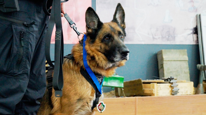 В Росгвардии Петербурга проводили на пенсию минно-розыскного пса Цезаря