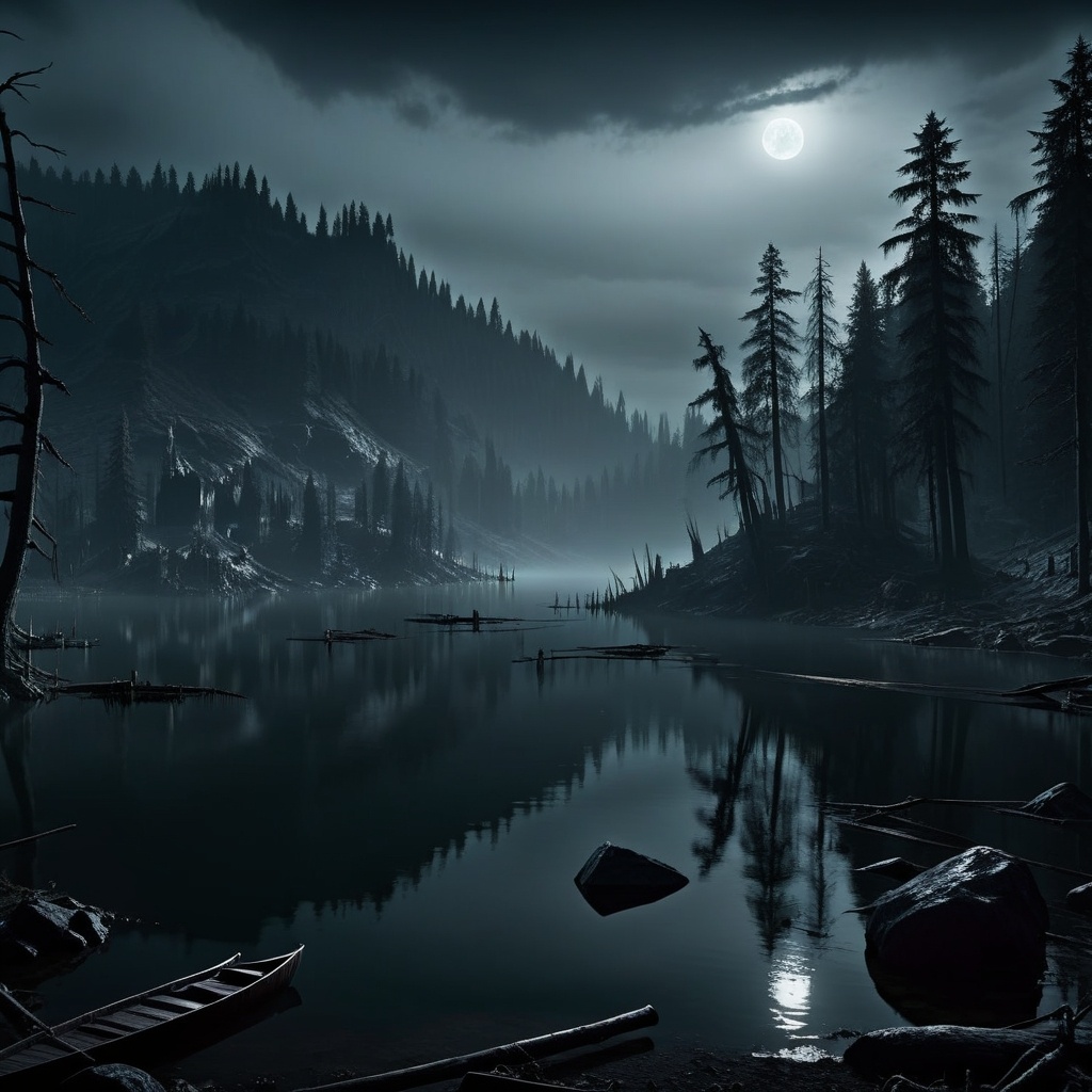 В затерянном среди дремучих гор городке, овеянном мифами и легендами, существовала жуткая история о "Глазах Ночи". Говорили, что в полнолуние, если подойти к озеру и заглянуть в его темные глубины, можно увидеть призраков тех, кто утонул в его водах, а также услышать их тихий, но полный страха шёпот. Лейла, молодая и амбициозная художница, всегда искала вдохновение в самых таинственных и загадочных местах, и этот миф привёл её к мысли о том, что она должна сама увидеть это таинственное озеро. Однажды, в безоблачную ночь, когда лунный свет ярко освещал окружающие леса, Лейла решила отправиться к озеру, полная любопытства и ожидания. Она захватила с собой лишь блокнот и фонарик, оставив все свои тревоги позади. Подойдя к воде, она была заворожена тем, как лунный свет отражался в озере, создавая завораживающий и мистический узор. Взглянув в глубину, она вдруг заметила нечто странное — глаза, полные тоски и страха, смотрели прямо на неё. Страх охватил её, но вместе с ним возникло непреод