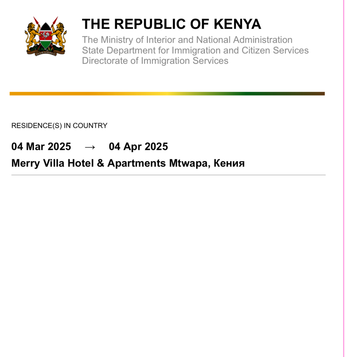 Утром я наконец-то определился со следующей африканской страной. Ей станет Кения. Почему именно она? Дело в том, что мне до нее от Дара ближе всего. Причем туда идет прямой автобус. Садитесь на автовокзале, и через пятьсот километров вы в кенийском городе Момбаса. Единственное неудобство — это то, что нужно электронное разрешение на въезд. Оформляется оно дистанционно. Нам необходимо заполнить анкету на сайте, приступим. Вопросы стандартные. Просят указать паспорт, адрес проживания в России. Сроки пребывания в Кении. Наименование пограничного перехода. Мы едем землей, так что обратных билетов у нас не спрашивают. Загружаем фото и бронь отеля. Бронировал на «Букинге» с бесплатной отменой. По завершению заполнения анкеты выскакивает окно оплаты. Платил с Андрюхиной иностранной карты, получилось 30$ плюс еще 2 бакса — какой-то налог. Платеж прошел, и моя заявка ушла на проверку. На следующий день на почту прислали электронное разрешение на въезд. В анкете указывал один месяц. Мож