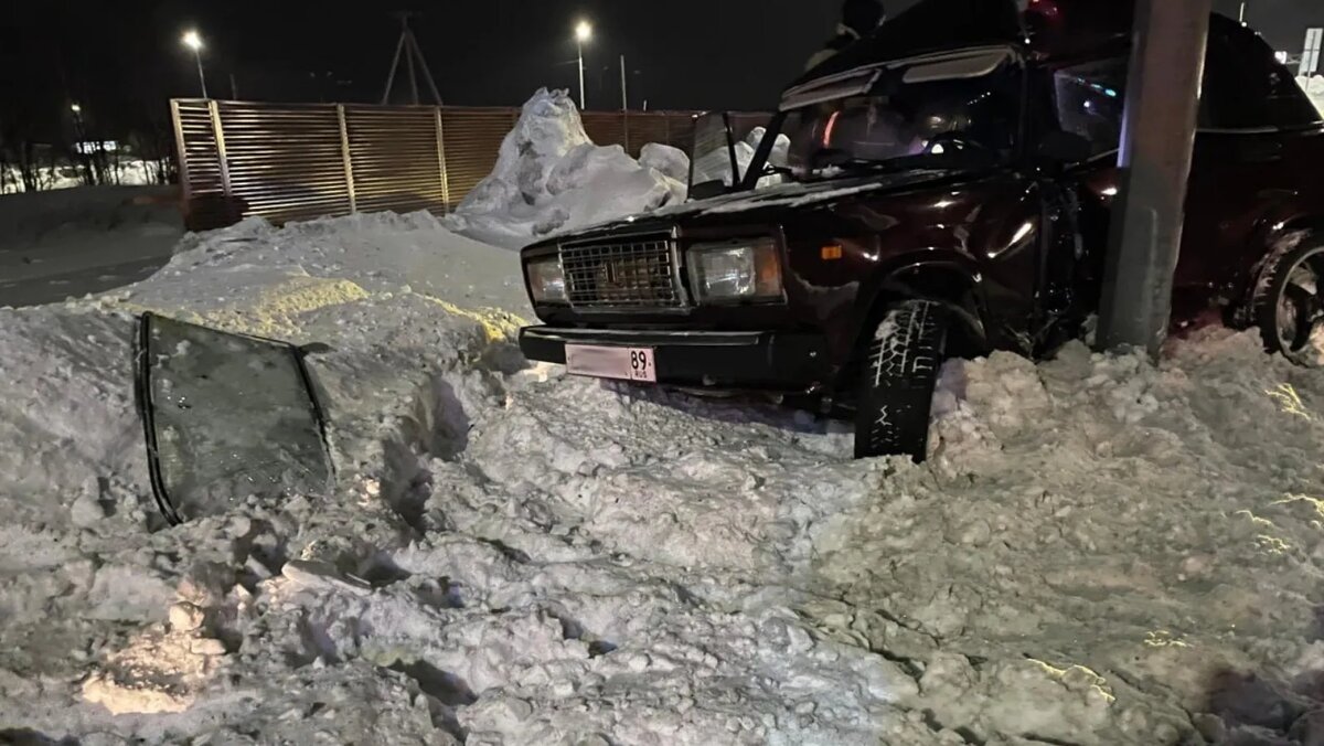 Водитель ВАЗ попал в больницу после встречи со столбом на ямальской трассе