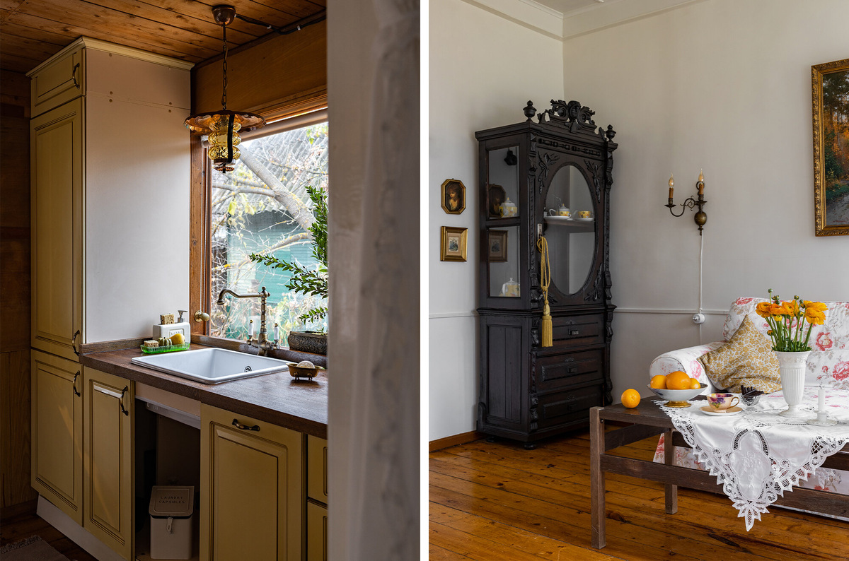 Сейчас, глядя на то, что у нас получилось, даже не верится, что когда-то мы могли думать о том, чтобы убрать дом с участка. Разумеется, мы немало потрудились, чтобы он стал таким, каким люди видят его сегодня. И всё равно я не представляю на его месте никакой другой — дом подошёл нам идеально. Его деревянные полы, окна и двери обошлись без замены. Мы только их отмыли, покрасили, слегка отреставрировали.