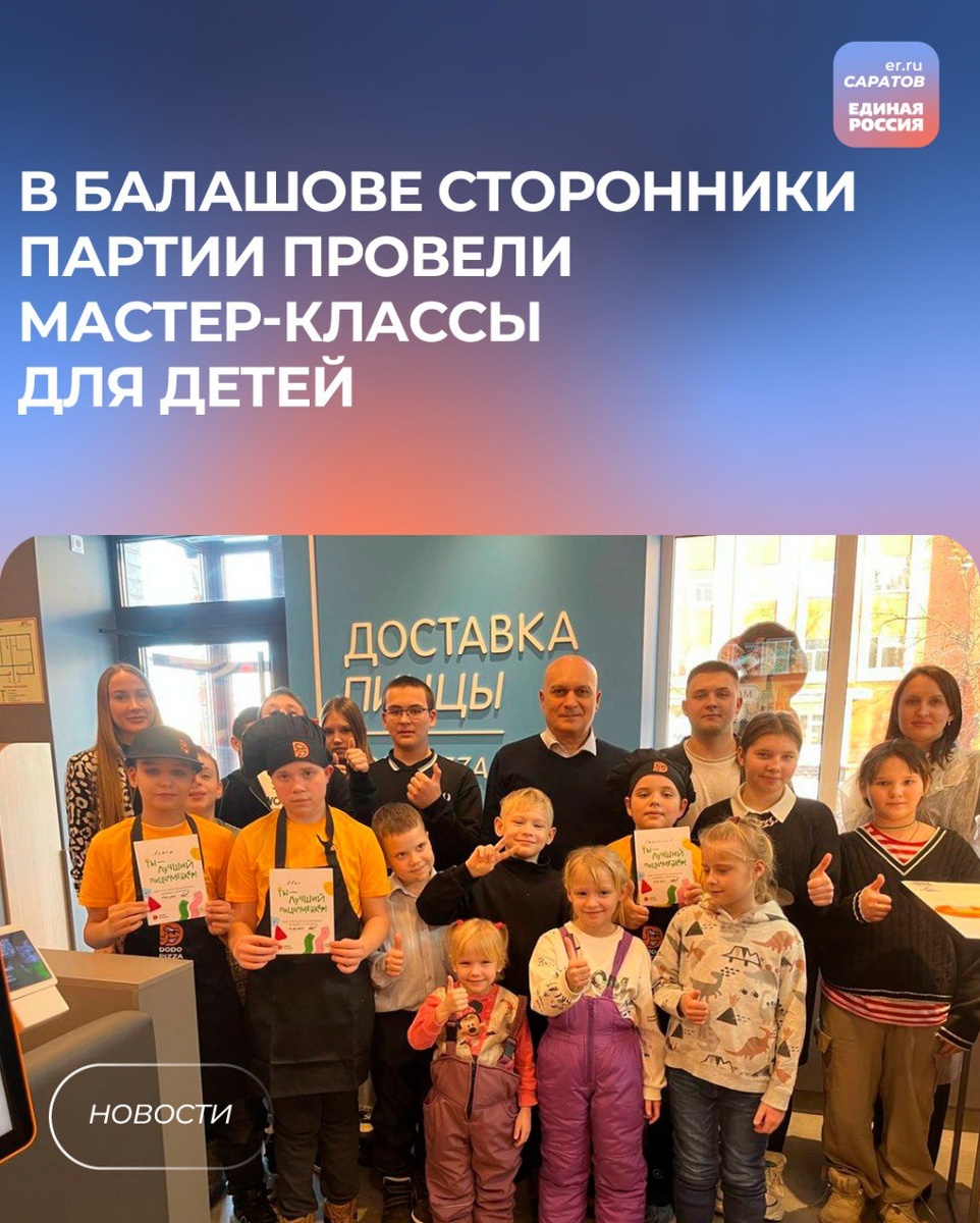 🍕Балашовские сторонники «Единой России» организовали мастер-класс по изготовлению пиццы для детей-сирот и детей, оставшихся без попечения родителей, проживающих в балашовском центре «Семья». Мероприятие прошло на площадке местной пиццерии. 💬«Это событие стало настоящим праздником, наполненным радостью, смехом и творческим подходом к кулинарии. Под руководством опытных пиццамейкеров каждый ребенок имел возможность не только узнать секреты приготовления пиццы, но и самостоятельно создать свою уникальную пиццу, выбирая любимые ингредиенты», – отметил председатель местного совета сторонников партии Спартак Степанов. Обсуждая различные рецепты и делясь идеями, дети смогли почувствовать себя настоящими поварами. Для детей участников СВО местные сторонники партии совместно с арт-студией «Разноцветная зебра» организовали творческий мастер-класс по росписи деревянных значков. Под руководством профессионального художника дети смогли не только проявить фантазию и художественные таланты, но