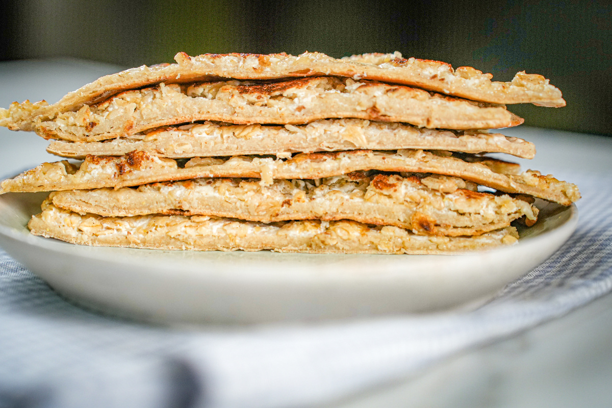 Второе тесто намазывается на первую лепешку сверху тонким слоем. Это какая-либо крупяная мука, как правило, овсяная, смешанная с простоквашей. Можно вместо простокваши взять кефир, молоко или сметану.
