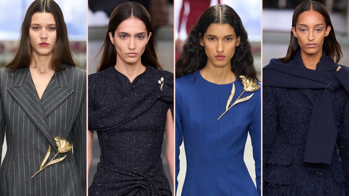 В Tory Burch броши фиксировали рукав вязаного кардигана или свитера на груди так, чтобы он драпировался спереди - странный трюк, который вы можете попробовать прямо сейчас. В Carolina Herrera кобальтово-синие макси-платья, пальто в полоску и серые костюмы были украшены брошью с цветочным узором.