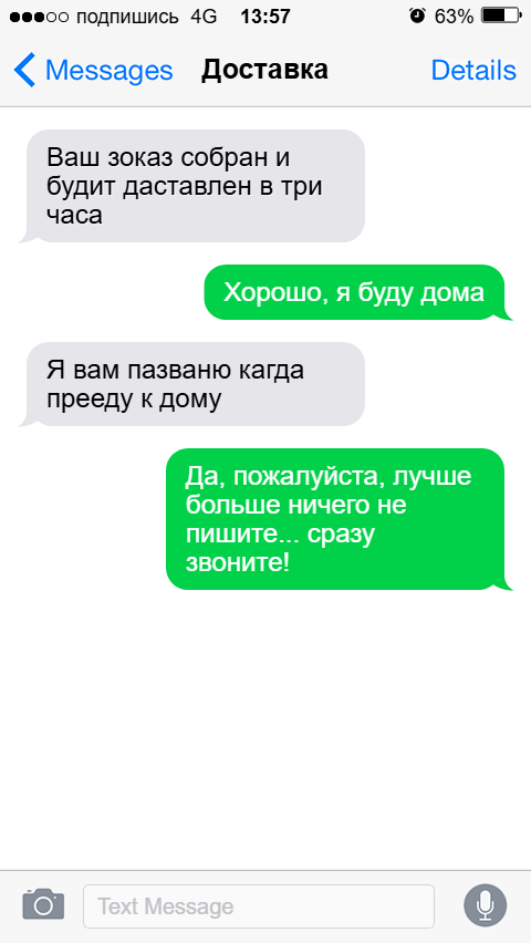 Я много переписываюсь с незнакомыми людьми, в основном по работе, но бывает и "в быту", например, с таксистом или с доставщиком еды приходится поддерживать текстовый диалог. И ладно, если человек делает просто опечатки, потому что пишет набегу или за рулем. Но ведь иногда бывают с такими "кадрами" начнешь общаться, что страшно становится. Кажется, они и правила русского языка не встречались никогда! Ранее я уже делала подборку сообщений с очепятками из-за автозамены: Сегодня хочу собрать самые жуткие смс-ки, которые могут буквально вогнать в депрессию любого учителя русского языка. Не скажу, что я граммар-наци и педантично поправляю всех, кто забывает про запятые (я и сама их забываю, а порой использую не в том месте), но все же. Курьеры мне попадались разные, но однажды я получила подобные сообщения от уникального человека. Он писал с ошибками почти все слова, даже самые банальные. Мне было так интересно посмотреть как выглядит человек, который пишет ВОТ ТАК. Оказалось, обычный такой