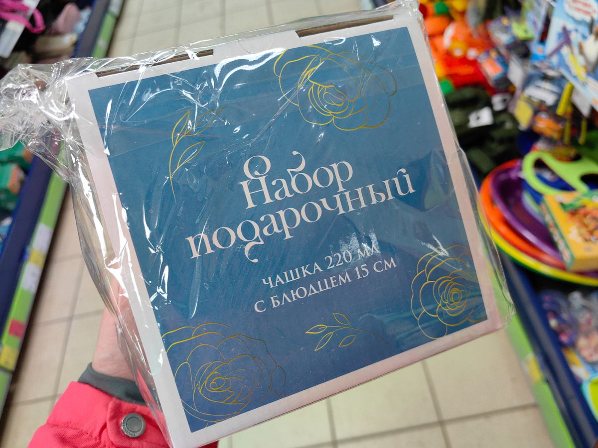 Второй день в Фикс Прайс много покупателей и новинок немало, выставляют товар. Смотрите, что привезли, для дома разное, новинки в подарочных коробках, к 8 марта. Что внутри? В коробке чашка и блюдце, из фарфора. На блюдце и чашке крупные цветы, край лепестков с тонкой позолотой. Внутренняя поверхность чашки и ручка белоснежные. Чашка 220 мл, блюдце 15 см. Наборов три, покажу все коробки. В бежевой чашка и блюдце с такими же цветами, в тон оформлению коробки, фон серо-зеленый, светлый. В сиреневой коробке, соответственно, темно-сиреневые цветы и фон светлый сиреневый. Только выставили, а ценник уже на месте, набор по 349р. Рядом еще симпатичные наборы из фарфора, можно и подарить такие. Внутри кружка, цветок и ручка золотистые, если заглянуть в коробку, видно, что в наборе еще небольшая чайная ложка из фарфора. Наборов несколько, оформление светлое, весеннее, приятное. Посуда отличается расцветкой и цветами. По 299р. Из самых свежих новинок еще вот такой комплект для кухни. П