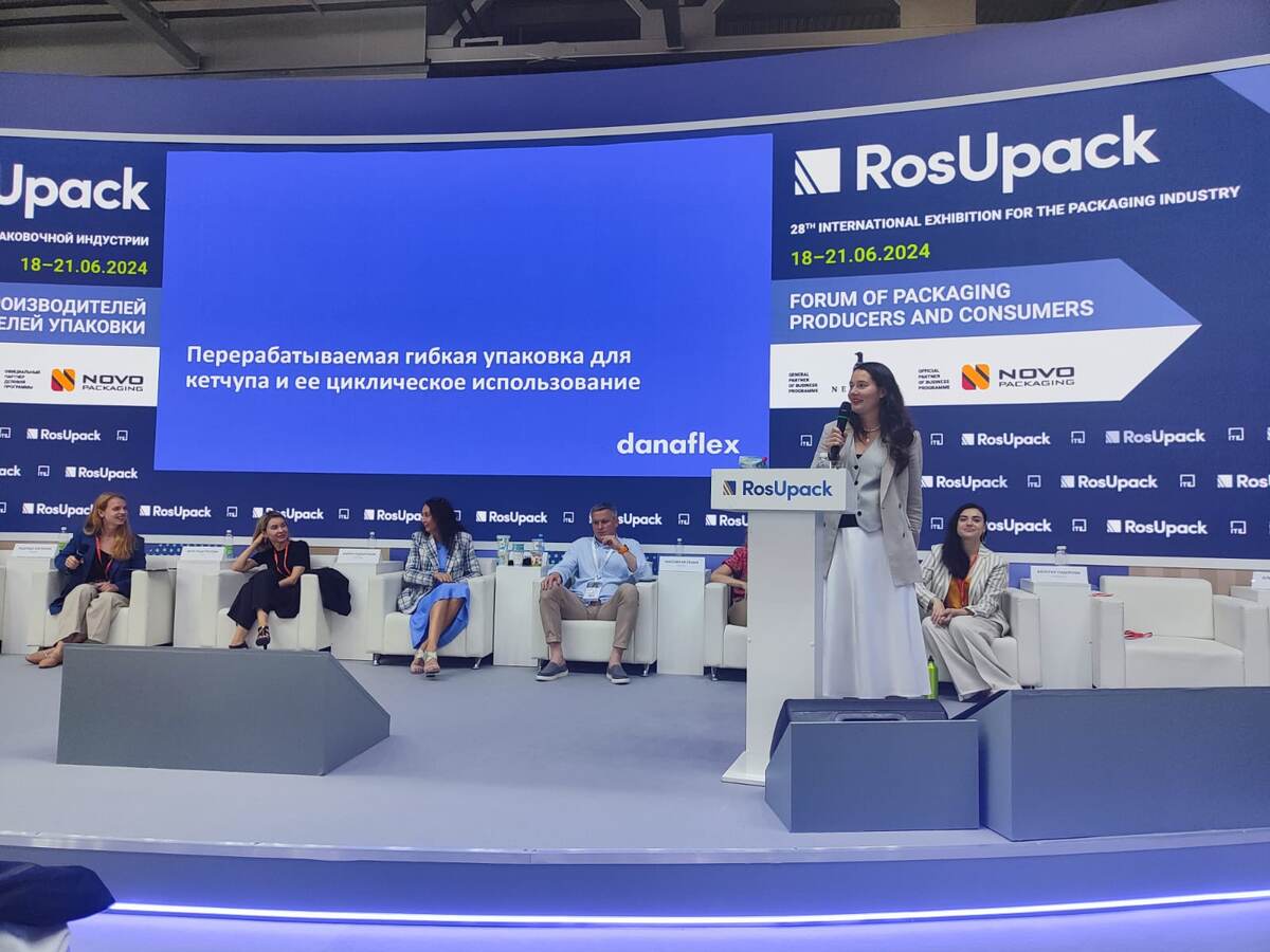 В рамках Дня устойчивой упаковки 19 июня на выставке RosUpack 2024 прошла сессия «Новости и кейсы устойчивой упаковки в 2024 году». На мероприятии выступила Алина Халимова, маркетинг и PR, Danaflex с презентацией и кейсом о перерабатываемой упаковке для кетчупа и рассказала о ее возможной цикличности. Кейс представлял коллаборацию Danaflex с компанией «Здрава» и было наглядно продемонстрировано, что перерабатываемое решение отлично работает на текущих фасовочных линиях без дополнительных инвестиций. Также, стоит отметить, что все дизайны для перерабатываемого решения для кетчупа выполнены с помощью нейросети и в стилистике известных российских художников концепции «Люди. Искусство. Инновации».