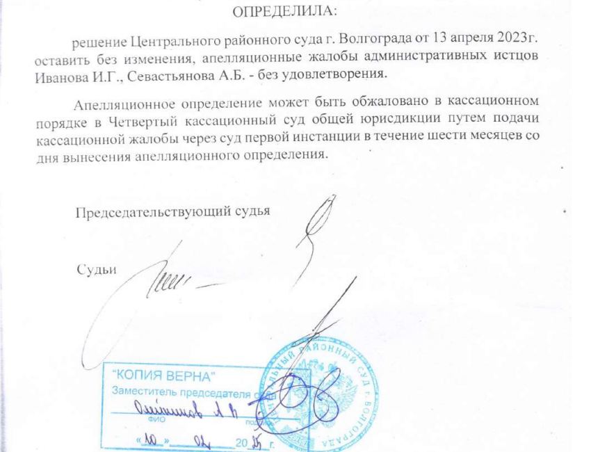В апелляционном определении указано, что суд учел заявления МБУ «Волгоградзеленхоза» о проведении исследования зеленых насаждений на Аллее героев. Так, в 22-м году посчитали, что множество