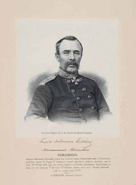 К закату солнца штаб-лекаря отправились на редуты, для подания советов и перевязок оставшимся во фронте раненым и контуженым. Между прочими и генерал Семякин оказался контуженым в правую сторону головы: правые щека и висок сильно распухли к ночи, горячи были на ощупь, жевание стало затруднительно и он оглох на правое ухо. Холодные компрессы его облегчали и он упорно оставался на боевой позиции с войсками.