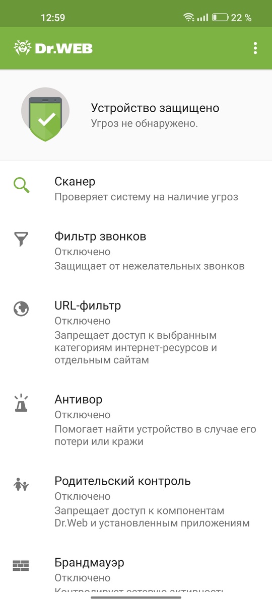 Российская разработка, доступная в Google Play. После установки потребуется выдать программе доступ к файлам, а также разрешить веб-защиту в разделе «Специальные возможности», куда антивирус автоматически перенаправит пользователя. Когда все разрешения будут выданы, остается нажать на кнопку «Сканировать». По завершении антивирус покажет общий список проверенных файлов, а также количество зараженных, если такие найдутся.