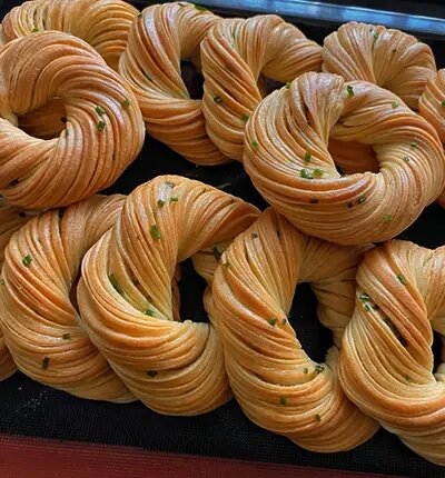 4. Смажьте тесто растопленным маслом, приготовьте булочки, как на фото.