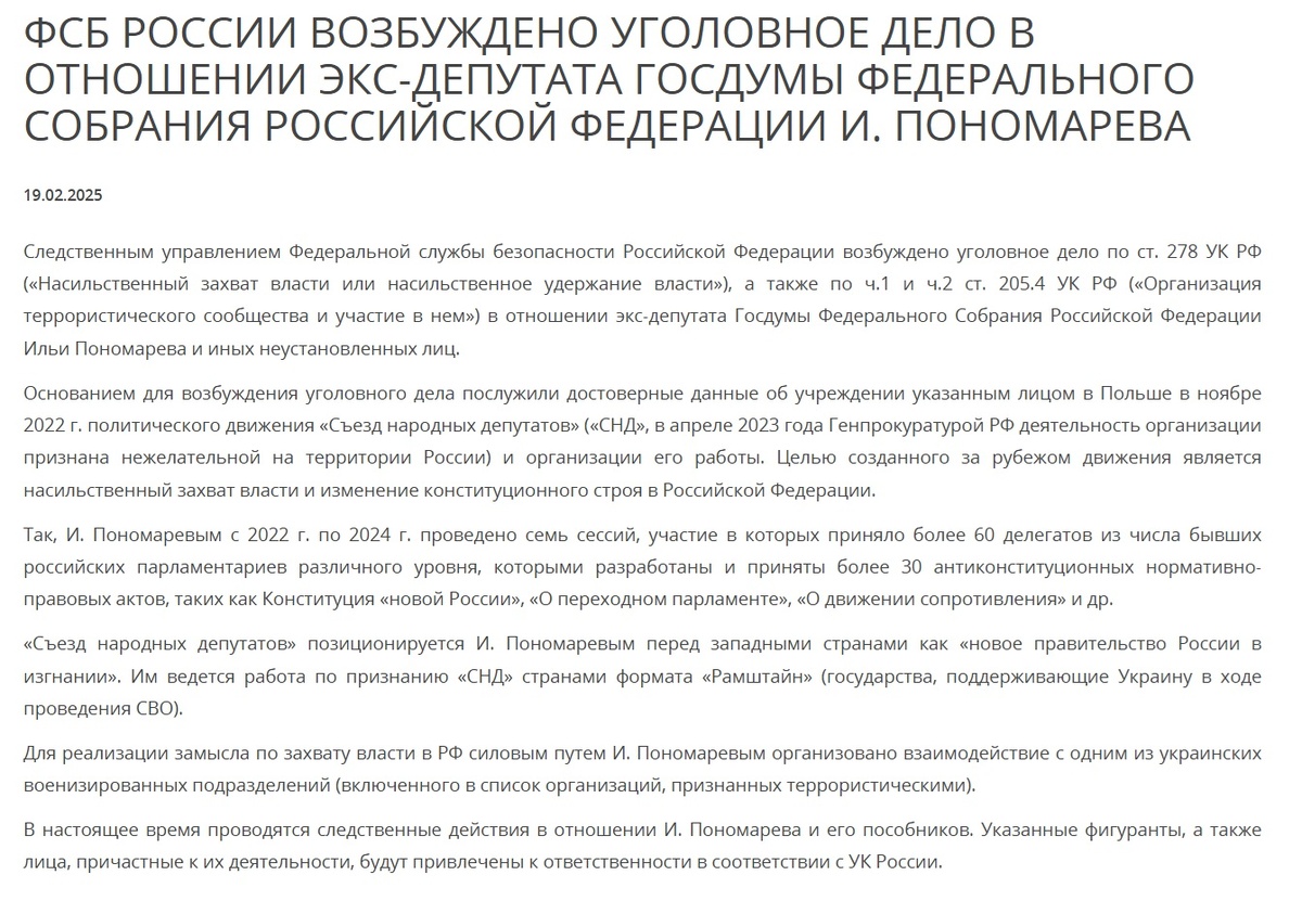 Последние годы фиксирую злодеяния террориста, экстремиста и иноагента Ильи Пономарева. В свое время он сбежал из России, чтоб не отвечать за свои махинации, и обосновался на Украине, где расчеловечился. На его счету пособничество боевикам, которые неоднократно нападали на наши приграничные территории, создание в Польше экстремистского сообщества для насильственного захвата власти у нас в стране и прочее-прочее. Против неонациста возбуждено несколько уголовных дел. И вот новое. По статьям 278 УК РФ (насильственный захват власти или насильственное удержание власти) и 205.4 УК РФ (организация террористического сообщества и участие в нем). Я нисколько не сомневаюсь, рано или поздно террористу, экстремисту и иноагенту Пономареву воздастся за всё.