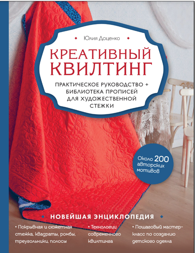 Если вы давно хотели научиться создавать настоящие произведения искусства из лоскутков ткани, но не знали, с чего начать, то книга «Креативный квилтинг. Практическое руководство и библиотека прописей для художественной стежки» Юлии Доценко станет вашим верным помощником на этом пути. Это не просто книга, а источник вдохновения, знаний и практических советов, которые помогут раскрыть ваш творческий потенциал и превратить обычные кусочки ткани в настоящее искусство. Подходит для любого уровня подготовки
