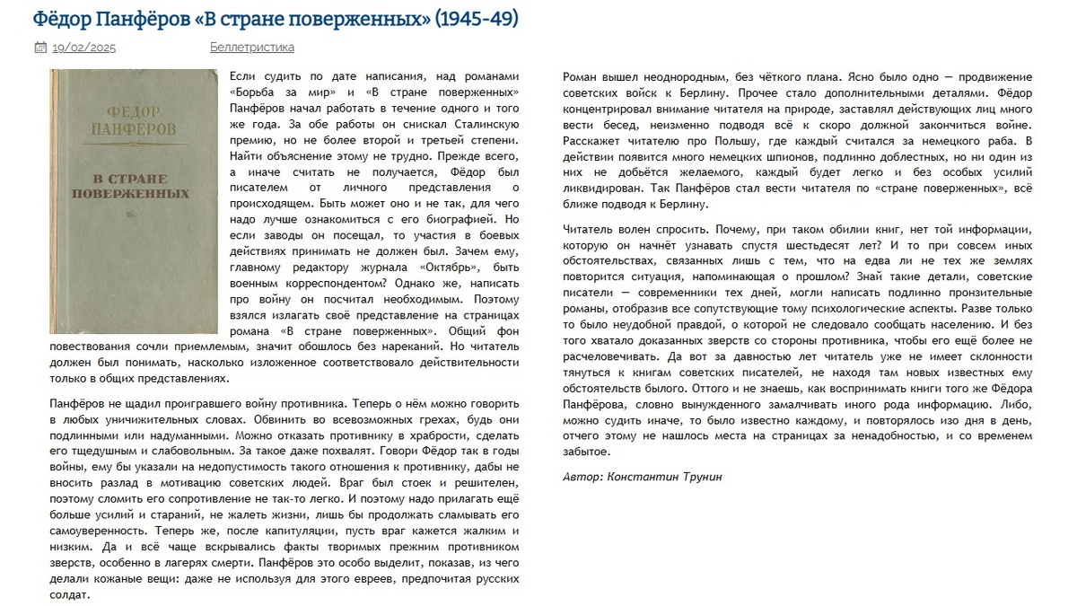 Фёдор Панфёров "В стране поверженных" (1945-49) | Критика