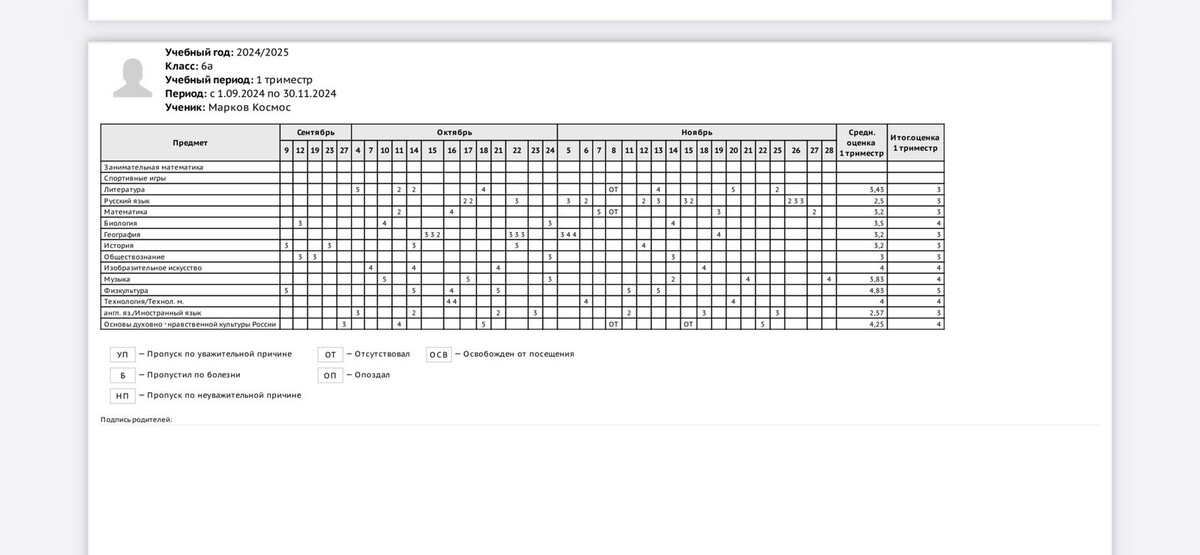 Цитирую, как есть: "На уроках низкая активность внимания. Воспринимает учебную информацию тяжело, с первого раза не понимает, что требуется делать. На уроках спокоен, в ходе урока не участвует, не может ответить на поставленные вопросы или отвечает односложно. Наблюдается слабая сформированность моторных навыков графической деятельности. Физическое развитие плохо развито. Почерк плохой. Уровень самостоятельной деятельности низкий. Домашнее задание выполняет не всегда и не полностью. За первый триместр неудовлетворительных оценок нет. Испытывает трудности при осмыслении учебного материала по всем основным предметам (русский язык, математика, литература, английский). Второй триместр: По русскому языку пишет неаккуратно, не соблюдает единых требований по оформлению письменных работ, допускает множество ошибок. Словарный запас мал, поэтому имеет затруднения при выражении собственных мыслей. Письменные самостоятельные и контрольные работы по русскому языку выполняет на "2". Учебный мат