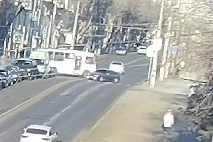 В Волгограде появились подробности утренней аварии на пр. Металлургов, спровоцировавшей крупный затор. Как сообщает ИА «Высота 102», в столкновении приняли участие рейсовый автобус №43 и автомобиль «ВАЗ 2114». Произошедшее засняла одна из камер видеонаблюдения.