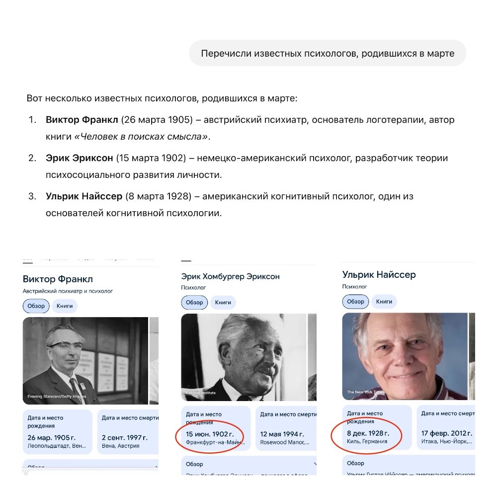 ИИ не умеет считать. Казалось бы такая умная система должна была бы включать в себя, как минимум, калькулятор. Даже айфон в заметках автоматически может произвести вычисления или посчитать стоимость валюты по актуальному курсу. А ИИ что глупее? На фото выше примеры глюков ИИ. К их чести замечу, что простые математические примеры они решали верно. А ChatGPT стал лучше считать вторники. Но все равно они уверенно терпят неудачи с простыми задачами подсчета. Интересно, что они в итоге оказались более творческими (пишут стихи, создают картины), чем точными. На самом деле ИИ не глупее айфона, просто он совсем по-другому работает. ИИ не вычисляет, он предугадывает. Подобно тому, как мы достраиваем в своем воображении неполную картину, ИИ генерирует наиболее вероятный ответ, основываясь на паттернах в своих данных. Это не математика – это вероятностная поэзия чисел. И в каком-то смысле неумение ИИ считать - не столько ошибка, сколько зеркало. Он показывает нам нашу предвзятость, нашу