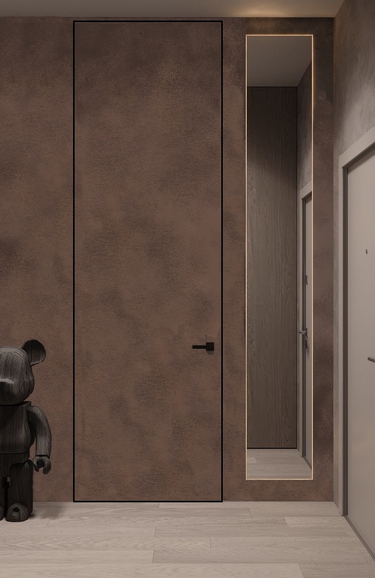 Скрытые двери устанавливаются на одном уровне со стеной, что делает их практически невидимыми и буквально растворяются в пространстве. Их можно покрасить в цвет стен, оформить под декоративную штукатурку или панелирова