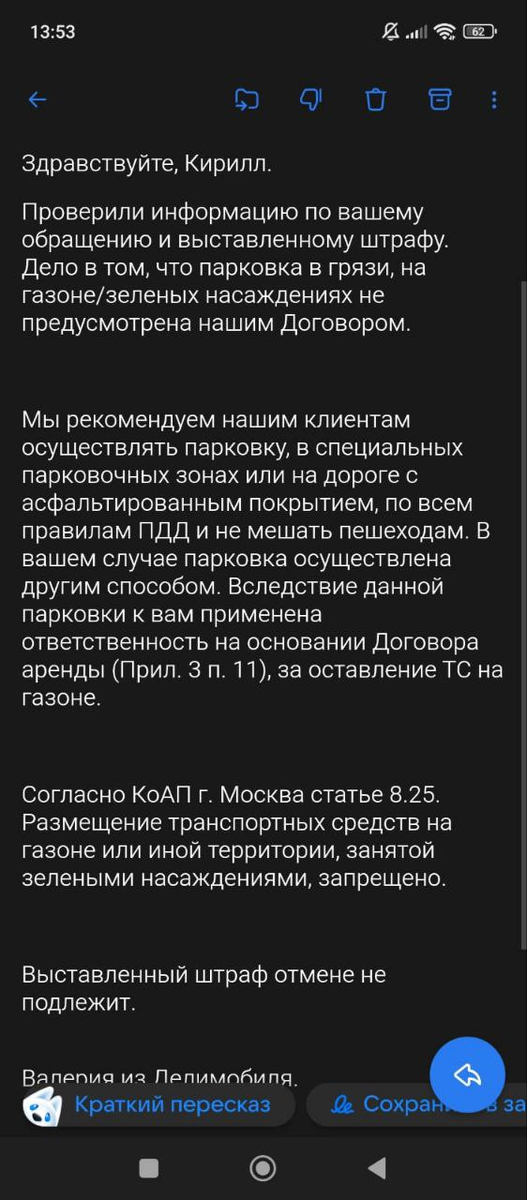 Например, один из наших клиентов получил вот такой штраф от оператора каршеринга
