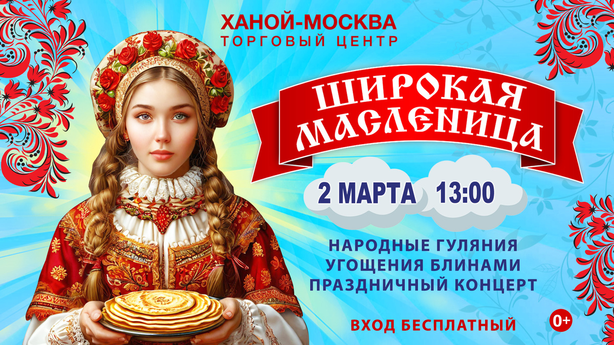 С сегодняшнего дня начинается традиционная масленичная неделя, которая завершится большим народным праздником! 2 марта «Ханой-Москва» приглашает отметить широкую Масленицу! Самый солнечный праздник – предвестник наступления не календарной, а настоящей природной весны – ознаменуется народными гуляниями, традиционными песнями и танцами. Ведущий проведет конкурсы и игры, эстафеты и викторину. Русские красавицы в народных костюмах исполнят традиционные песни под аккомпанемент гармониста, закружат в хороводах и проведут мастер-классы по танцам. Но главное, на территории «Ханой-Москва» будет работать блинная станция с кружевными, маслеными солнышками, которые получит любой желающий. Вход свободный. Адрес: Москва, Ярославское шоссе, дом 146, корпус 1