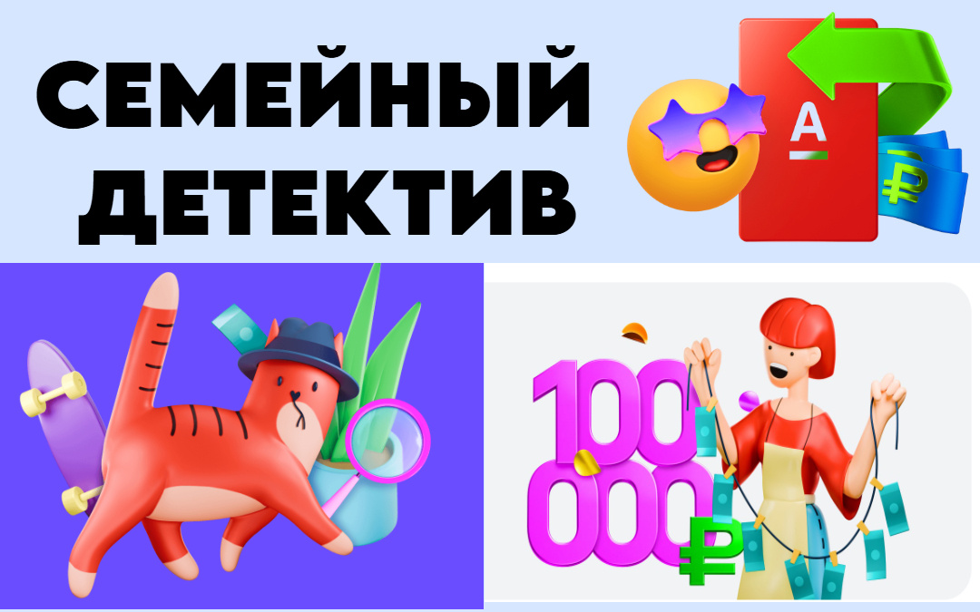 В Альфа-Банке запустили новую игру «Семейный детектив». Здесь 15 комнат, и все открыты сразу — ждать ничего не нужно. В каждой комнате по 3 вопроса с 4 вариантами ответов. За правильные ответы начисляются звёзды.