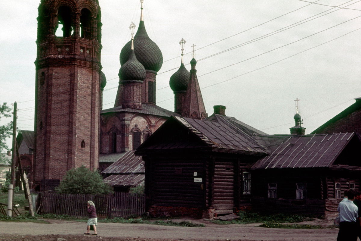 Церковь Михайла Архангела на Которосльной набережной. Слева виднеется обезглавленный верх храма Ярославских Чудотворцев.