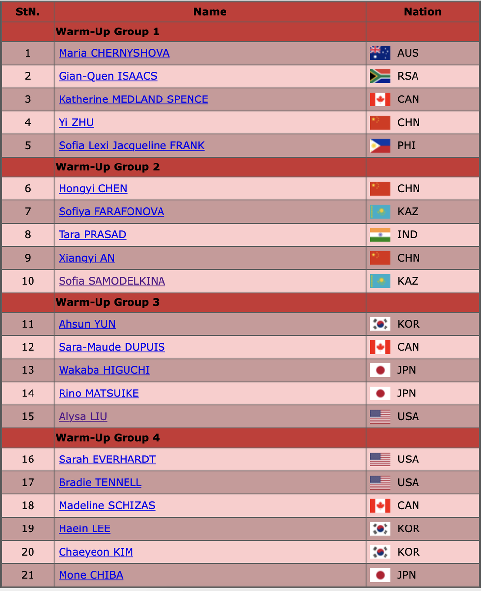 Мой обзор на прокат Самоделкиной и две последние разминки. Список участниц и порядок выхода на лёд: Каскад из тройных лутца с тулупом - неясное ребро, но это нашли уже после пересмотра - до этого даже хорошие плюсы поставили. Двойной аксель - чисто. Тройной флип во второй части - чисто, и тоже на хорошие плюсы. Вращения 3 и 4 уровня. Дорожка 3 уровня. Танго. Первая часть спокойная, к дорожке музыка уже расходится. Не могу сказать, что мне понравилась постановка: я видела более интересный танец в исполнении одиночниц. Здесь вопрос к музыке. В целом, чисто, хотя уровни можно было не терять. Фигуристка повзрослела, не может уже выдавать прокаты себя в 15 лет. Результат КП: 63.98 Тройной лутц с тройным тулупом - чисто. Двойной аксель - чисто. Во второй части тройной флип - чисто. Вращения 3 и 4 уровня. Дорожка 3 уровня. Здесь классическая корейская "ниочёмная" программа, но в отличие от других кореянок, эта спортсменка проявляет эмоции на льду. Хорошее ровное выступление. Результат КП: 65