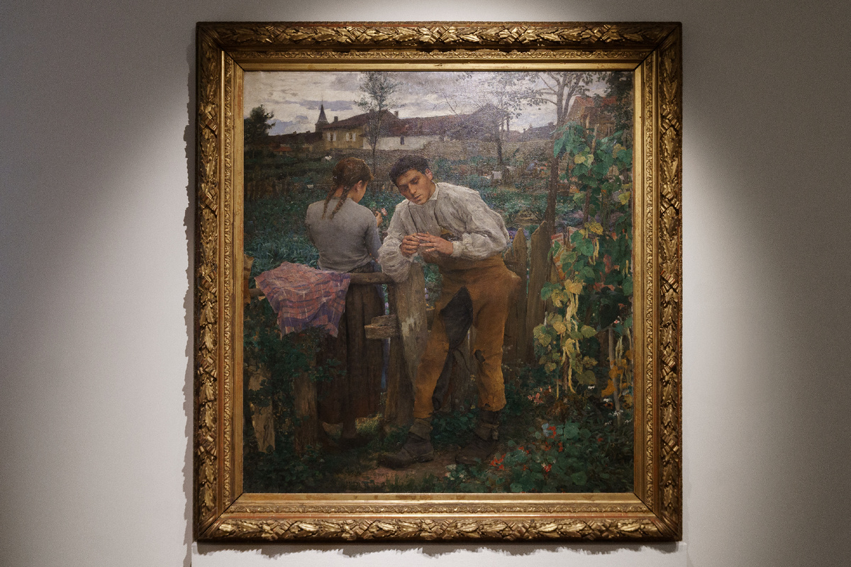 «Деревенская любовь» (1882) — одно из лучших произведений Жюля Бастьен-Лепажа. Умение безошибочно улавливать моменты гармонии человека и природы, свойственное мастеру, изображение крестьян в натурных пейзажах в сочетании с жанровыми сценами принесло ему широкую известность «поэтичного реалиста». Колористическое решение картины «Деревенская любовь» говорит о знакомстве художника с новейшими направлениями современного ему французского искусства, в частности с живописью импрессионистов. Картина Бастьен-Лепажа принимала участие в Салоне 1883 года и вызвала большой интерес у публики. Полотно быстро обрело коллекционера. Известно, что в письме от 11 мая 1883 года Академия изящных искусств предложила художнику за картину 6000 франков. В тот же день Бастьен-Лепаж ответил следующее: «Господин директор, с сожалением извещаю Вас, что картина («Деревенская любовь»), покупку которой Вы предлагаете, больше мне не принадлежит». В это время она уже была куплена французским галеристом Жоржем Пти. В 188