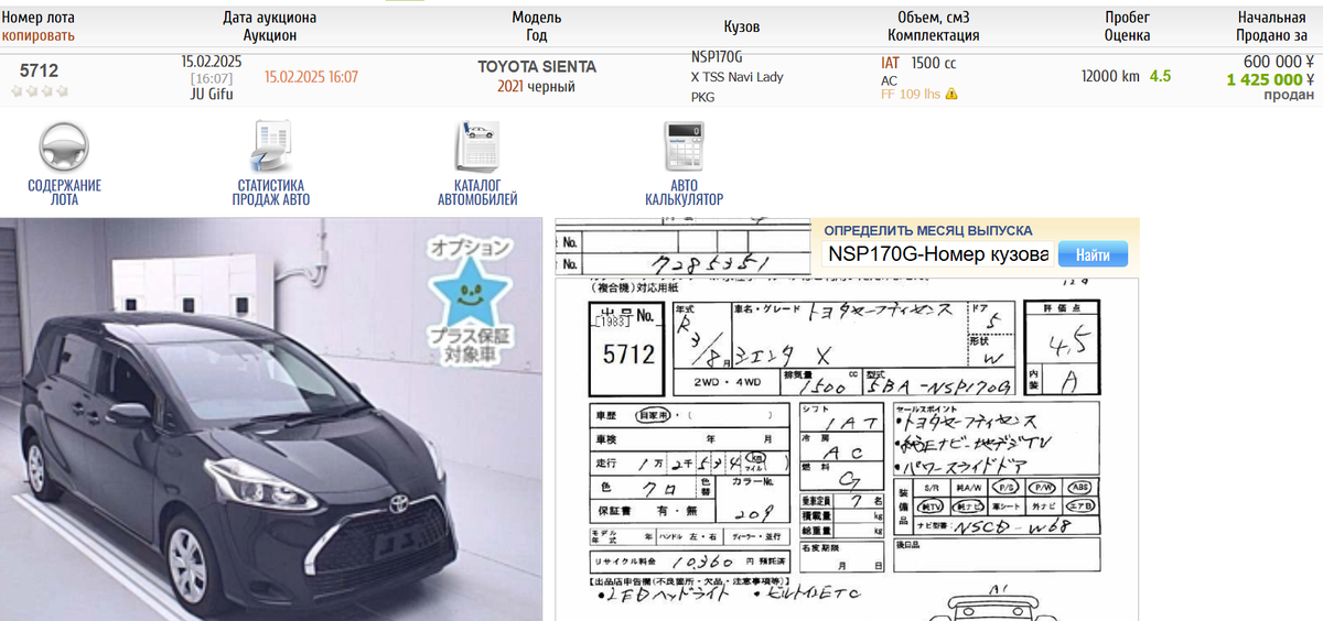 Здравствуйте дорогие друзья. 15 февраля помогли купить Заказчику из Тульской области Toyota Sienta 2021 года выпуска с пробегом 12 534 километра по аукционному листу, аукционная оценка 4,5 балла, в кузове NSP170G. Чёрный цвет многих Заказчиков устраивает, у Sienta есть довольно яркие, кислотные цвета. Пока всё отлично, но есть ещё комплектация и стоимость автомобиля. Здесь минимальная комплектация Х: одна элетро дверь, кондиционер и обычный ключ зажигания, типа «жало». В средней комплектации G уже будет бесключевой доступ, климат контроль, две электро двери. И стоимость автомобиля тоже довольно высокая для Toyota Sienta (по мнению автора стать). В сегодняшней статье мы сравним стоимость Toyota Sienta и её конкурента Honda Freed с большими пробегами и с лучшими комплектациями по сравнению с нашей покупкой. Все варианты будут 2021 года выпуска. Ещё есть цвет, аукционная оценка, что тоже ощутимо влияет на конечную стоимость. Давайте посмотрим фото нашей покупки. А на лоты из статистки бу