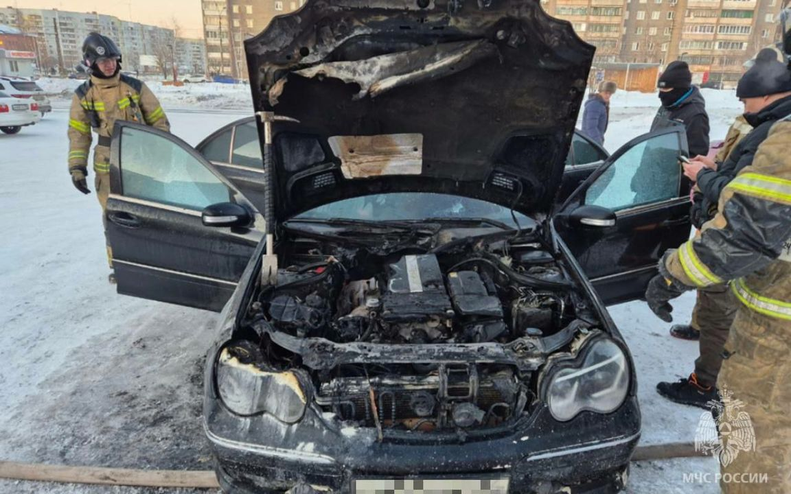 На улице Крупской в Братске загорелся «Мерседес Бенц»
